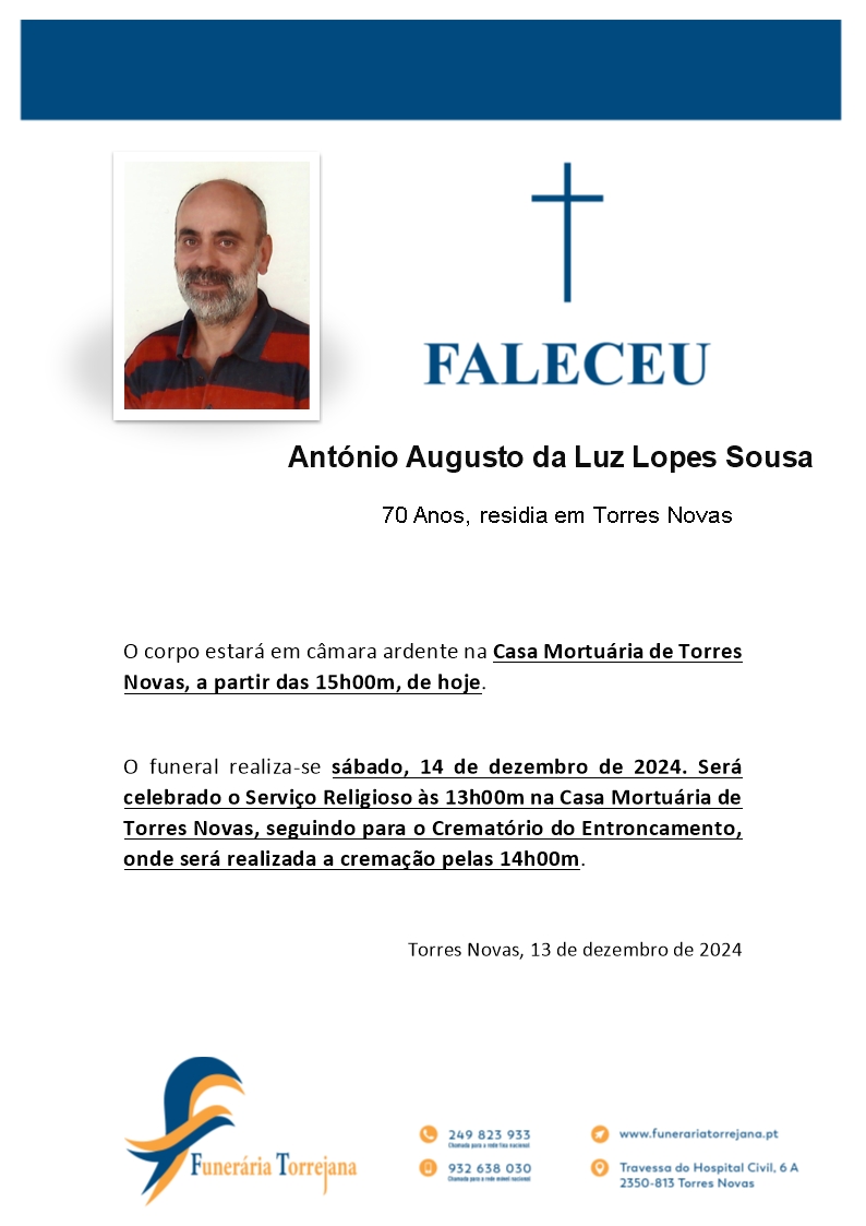 Velório: Casa Mortuária Torres Novas – 15h00m ( 13/12/2024)