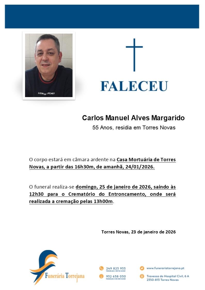 Velório: Casa Mortuária de Torres Novas – 16h30m (24/01/2026)