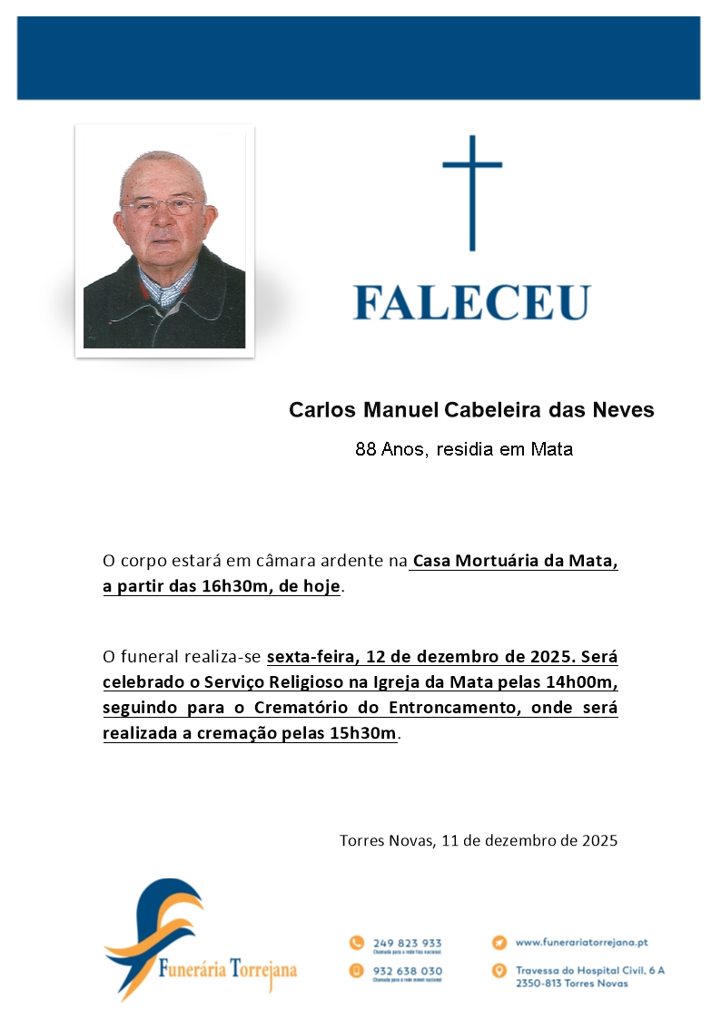Carlos Manuel Cabeleira das Neves 22 de Janeiro, 1937 - 11 de Dezembro, 2025