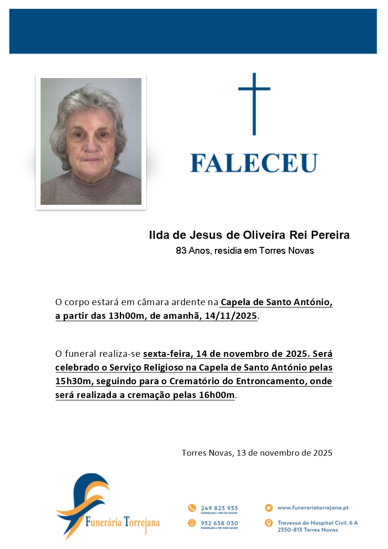 Ilda de Jesus de Oliveira Rei Pereira 2 de Agosto, 1943 - 13 de Novembro, 2025