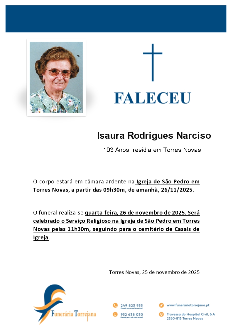 Funeral: Igreja São Pedro em Torres Novas – 11h30m (26/11/2025)