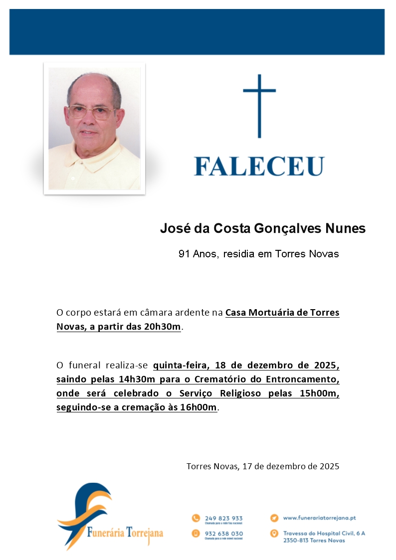 José da Costa Gonçalves Nunes 15 de Julho, 1934 - 17 de Dezembro, 2025