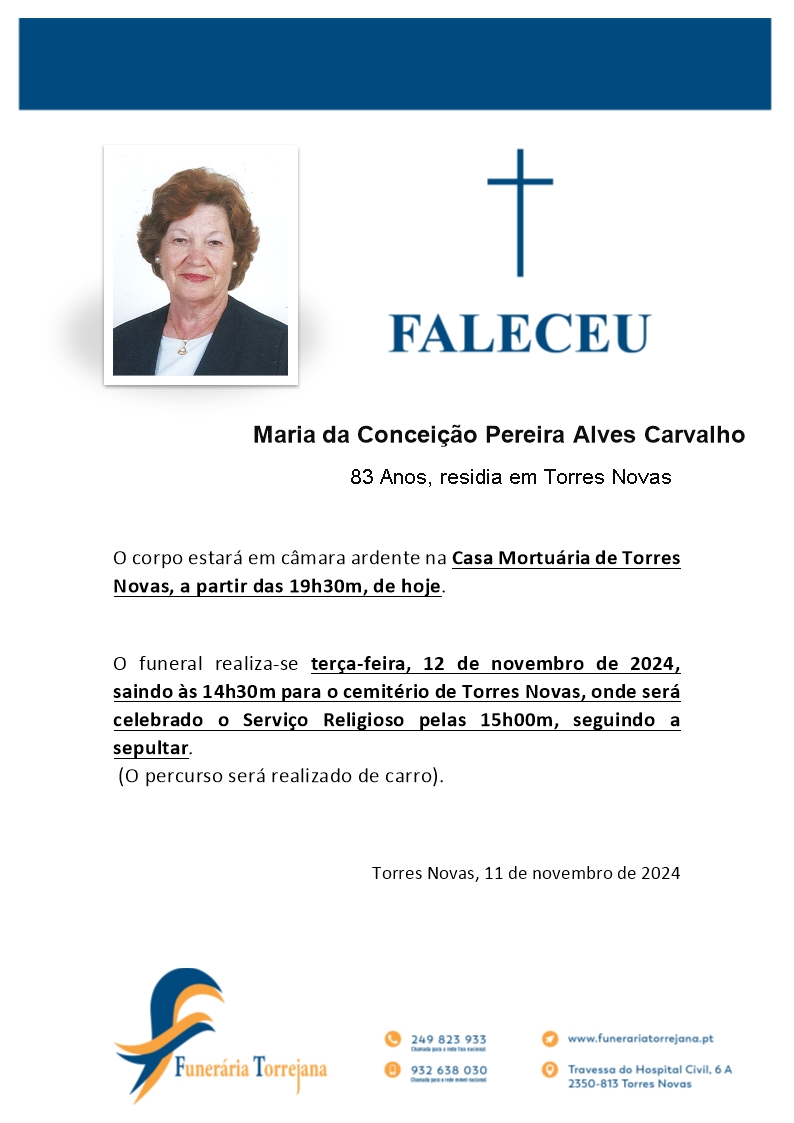 Funeral: Cemitério de Torres Novas – 15h00m (12/11/2024)