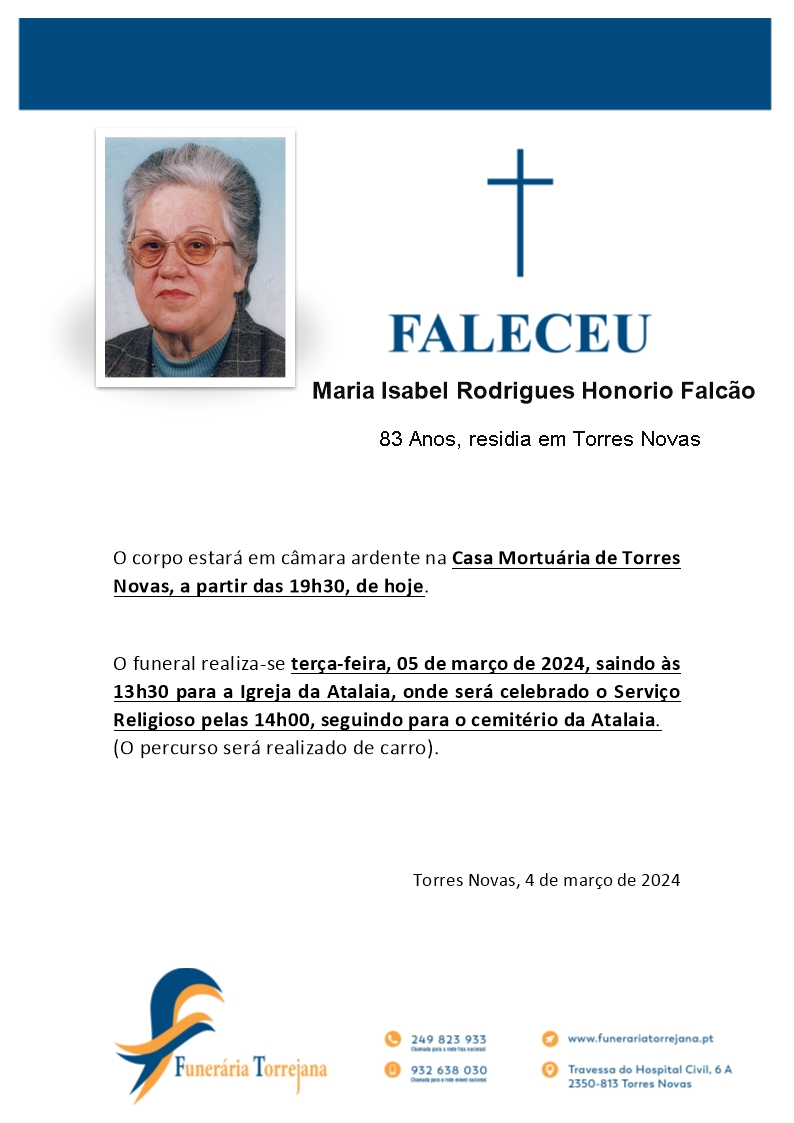 Maria Isabel Rodrigues Honório Falcão 12 de Agosto, 1940 - 4 de Março, 2024