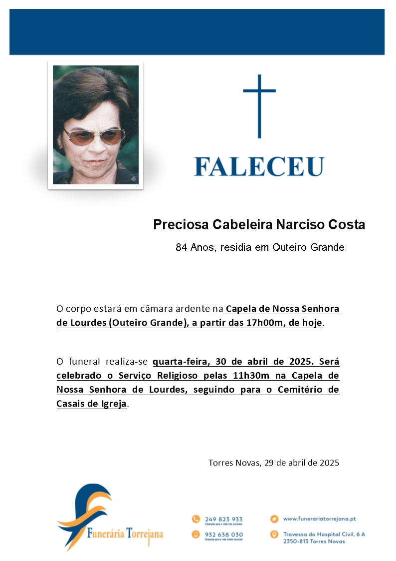 Funeral: Capela Nossa Senhora de Lourdes (Oureito Grande) – 11h30m